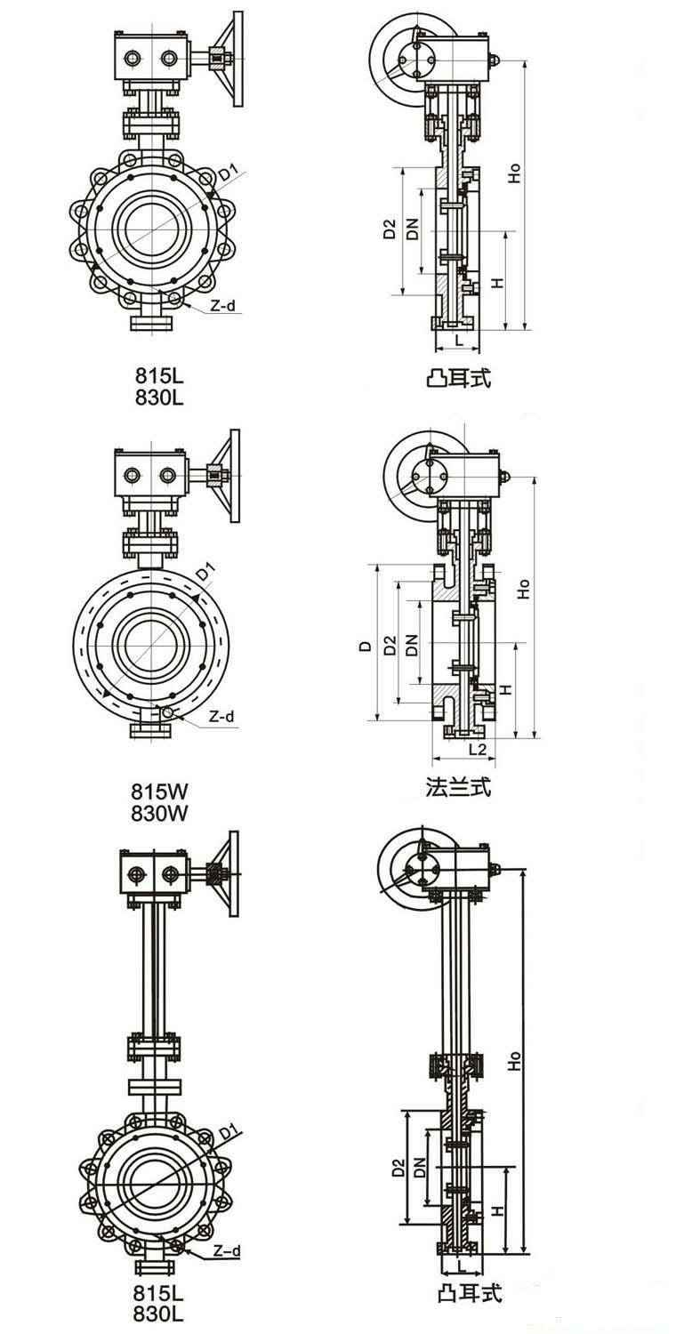 815、830系列美标蝶阀的主要结构特征为对夹式和法兰式三偏心结构,而815、830L系列蝶阀的主要结构特征为阀体周边带凸而且设计成带螺孔单法兰结构,815、830系列蝶阀广泛应用于石油、化工及工业环保水处理、高层建筑,给排水等管道上。其特点为: