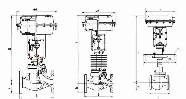 气动单座调节阀 主要外形尺寸
